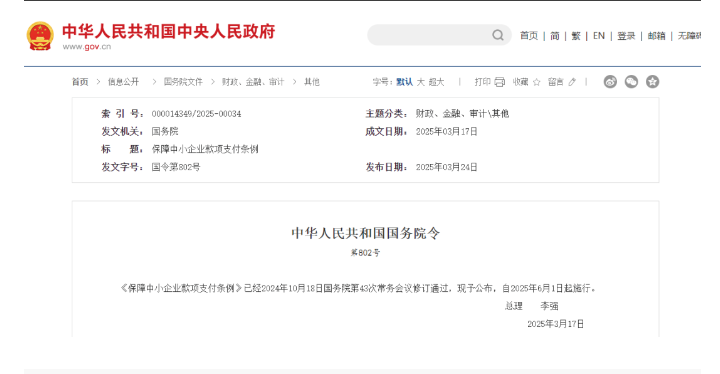 保障中小企業(yè)款項(xiàng)支付條例(2020年7月5日中華人民共和國(guó)國(guó)務(wù)院令第728號(hào)公布 2025年3月17日中華人民共和國(guó)國(guó)務(wù)院令第802號(hào)修訂) 第一章 總 則 第一條 為了促進(jìn)機(jī)關(guān)、事...