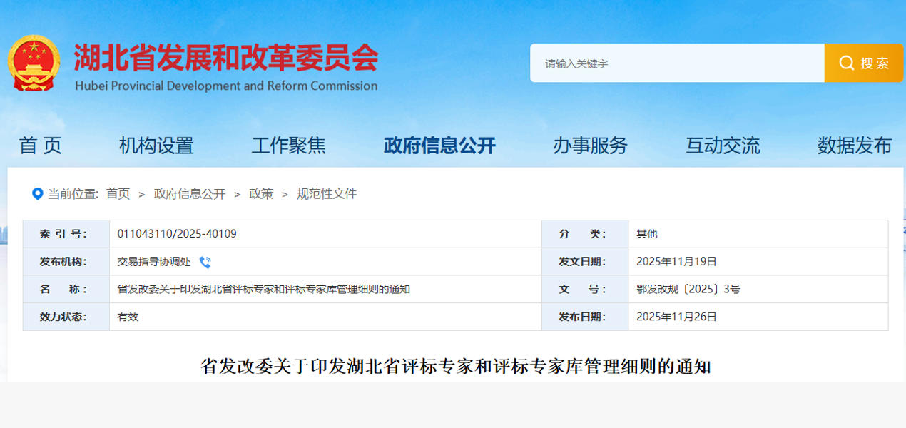 湖北省發(fā)改委印發(fā)評標(biāo)專家和評標(biāo)專...