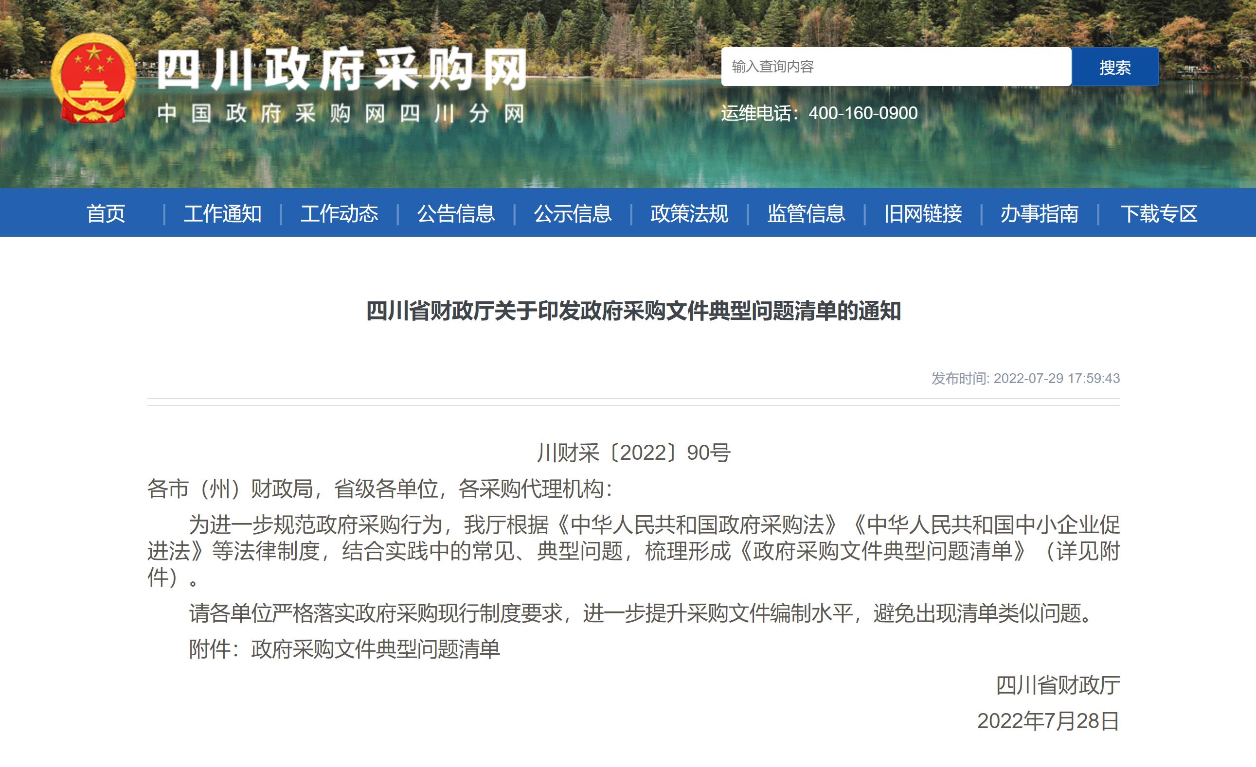 近日,四川省印發(fā)《政府采購文件典型問題清單》(以下簡稱《清單》),要求各單位嚴格落實政府采購現(xiàn)行制度要求,進一步提升采購文件編制水平。