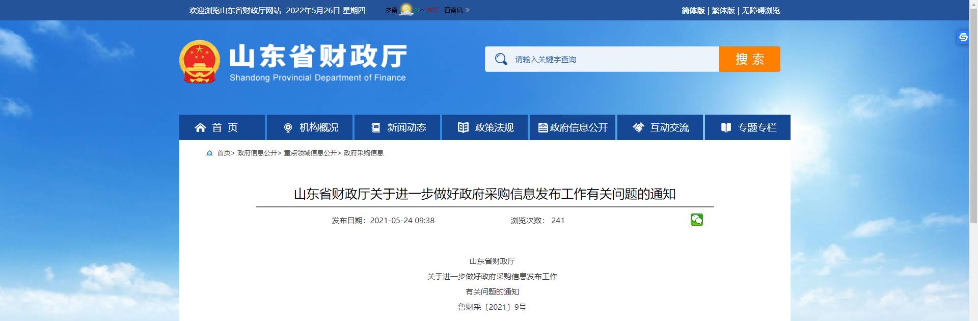 近日,山東省財(cái)政廳發(fā)布《關(guān)于進(jìn)一步做好政府采購信息發(fā)布工作的通知》(以下簡稱《通知》),提出除競爭性談判、詢價(jià)采購?fù)?,其他采購方式在發(fā)布《中標(biāo)(成交)結(jié)果公告》時(shí),應(yīng)一并發(fā)布未中標(biāo)(成交)供應(yīng)商的評(píng)審得分情況及未中...