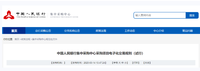 中國(guó)人民銀行集中采購(gòu)中心采購(gòu)項(xiàng)目電子化交易規(guī)則(試行) 第一章 總 則 第一條 為推進(jìn)中國(guó)人民銀行集中采購(gòu)中心(以下簡(jiǎn)稱集中采購(gòu)中心)采購(gòu)項(xiàng)目全流程電子化交易,規(guī)范電子化交易...