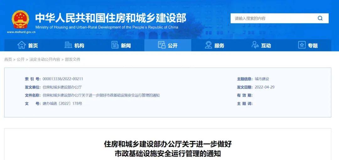 住房和城鄉(xiāng)建設(shè)部辦公廳通知要求進一步做好市政基礎(chǔ)設(shè)施安全運行管理工作為認(rèn)真貫徹落實習(xí)近平總書記關(guān)于安全生產(chǎn)的重要指示精神和黨中央、國務(wù)院決策部署,落實國務(wù)院安全生...